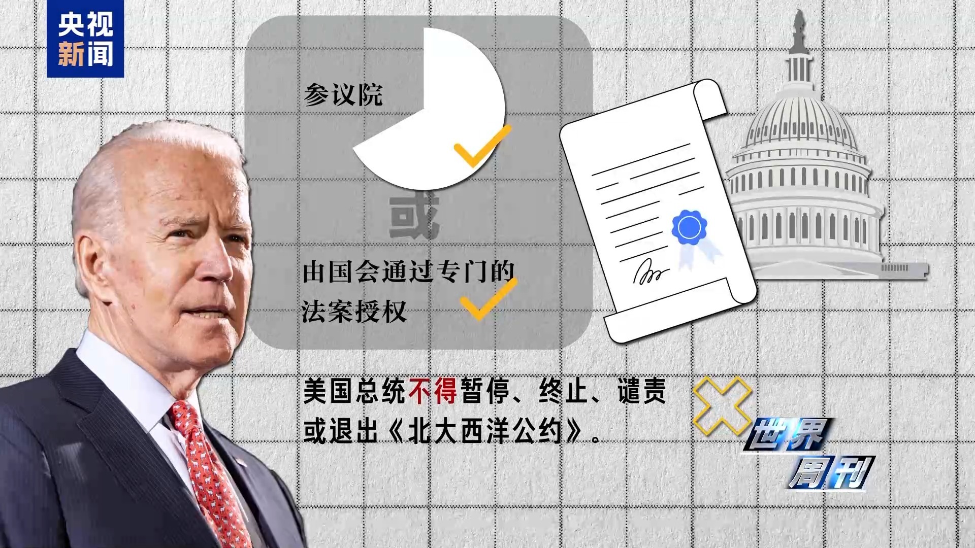 但在2023年拜登总统执政时期,美国国会通过了一项法案,规定美国总统不得暂停、终止、谴责或退出《北大西洋公约》,除非得到参议院三分之二多数票同意,或者由国会通过专门的法案授权。正是因为有了这项法案,即使现在所有参议院共和党人都投票支持美国退出北约,也还需要至少14名民主党人或无党派人士投票支持,才能达到三分之二的门槛。